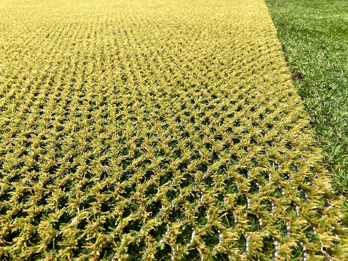 芝が定着しましたら人工芝部分は撤去し、天然芝を張り替えます。
