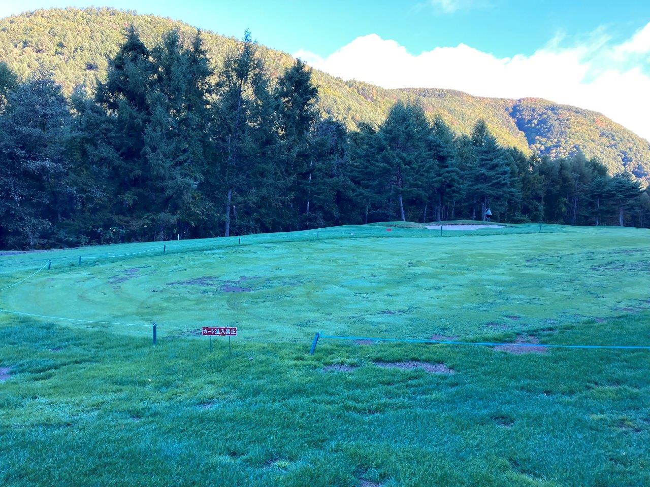 大幅な芝の張り替えや散水、堆肥、消毒、更新作業、播種など、回復できるよう精一杯作業をしておりますが、臨時的にローカルルールを定めさせて頂いております。