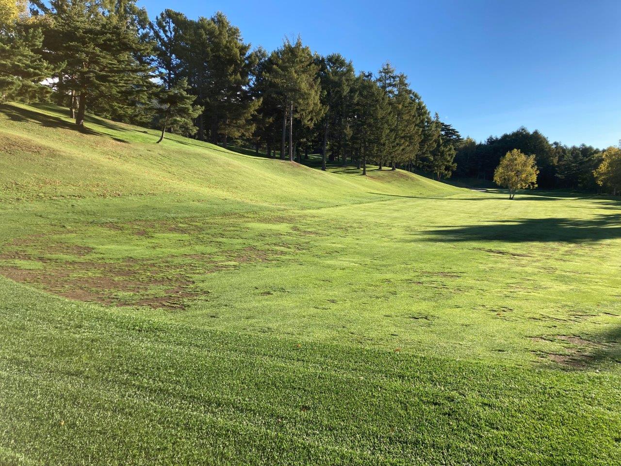 現在、コース内におきまして、芝の剥げている(裸地)箇所があり、大変ご迷惑をお掛けしております。