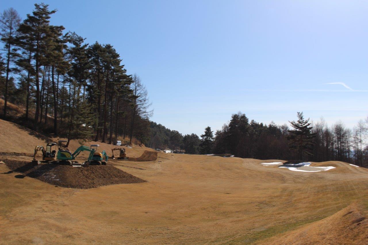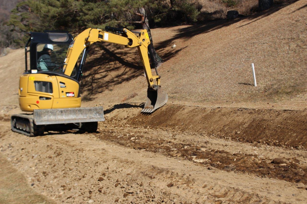 大幅に管理手法の見直しを行い、さらに対策工事として、暗渠排水管・カート道路・自動散水システムの新設工事を現在行っております。