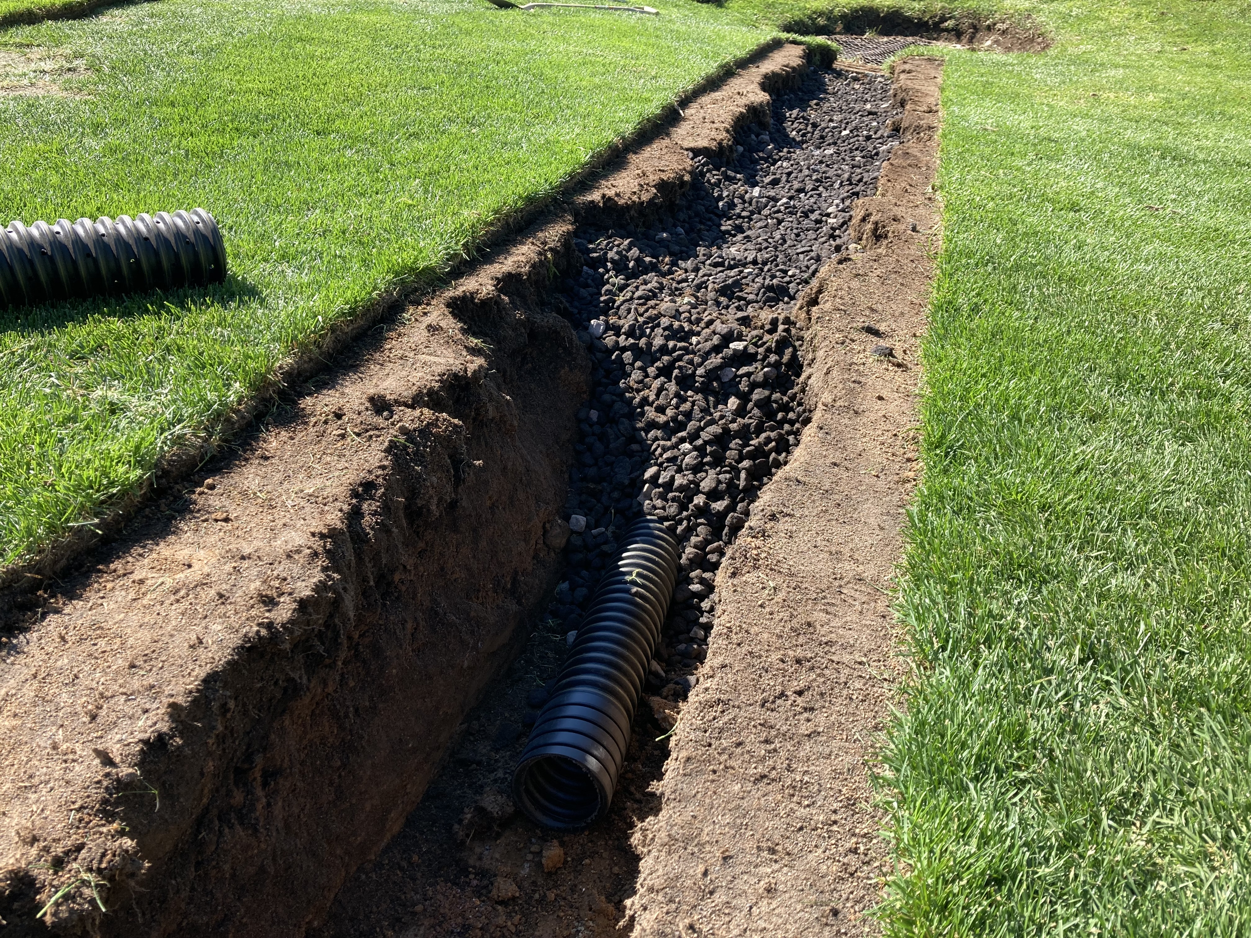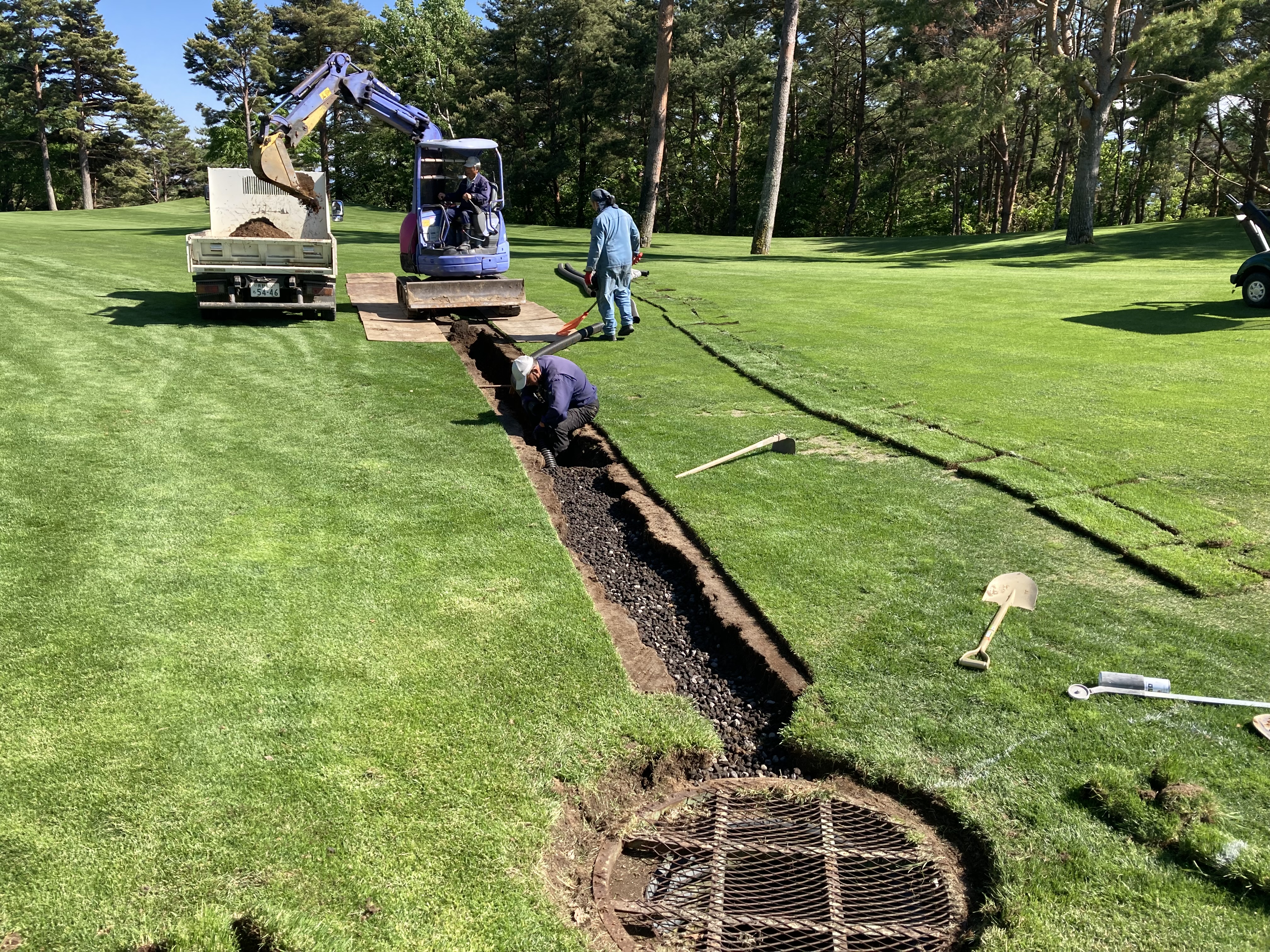 コース内排水不良個所への暗渠排水管の設置工事を5月23日から7月上旬にかけて行います。