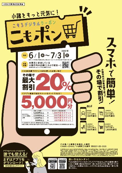 小諸市と小諸商工会議所では、電子クーポンによる最大20%割引キャンペーン「こもポン」を実施しております。