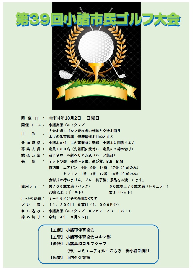 第39回小諸市民ゴルフ大会が下記要綱にて開催されます。